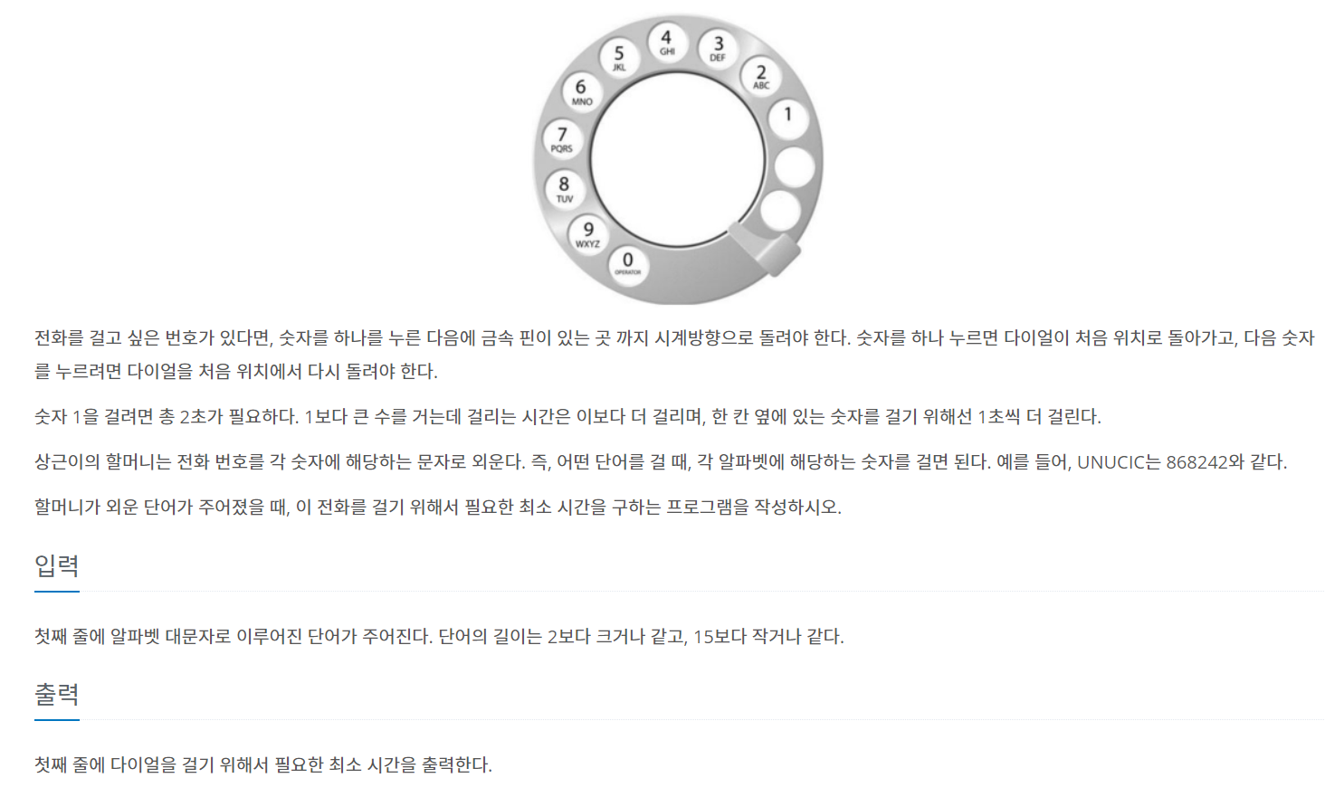 1일 1백준 10일차, 오늘 푼 문제는 5622번 문제인 "다이얼"이다.